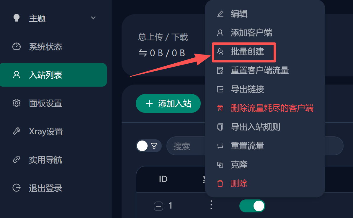 POST "/delDepletedClients/:id" 删除入站耗尽的客户端 -1 all