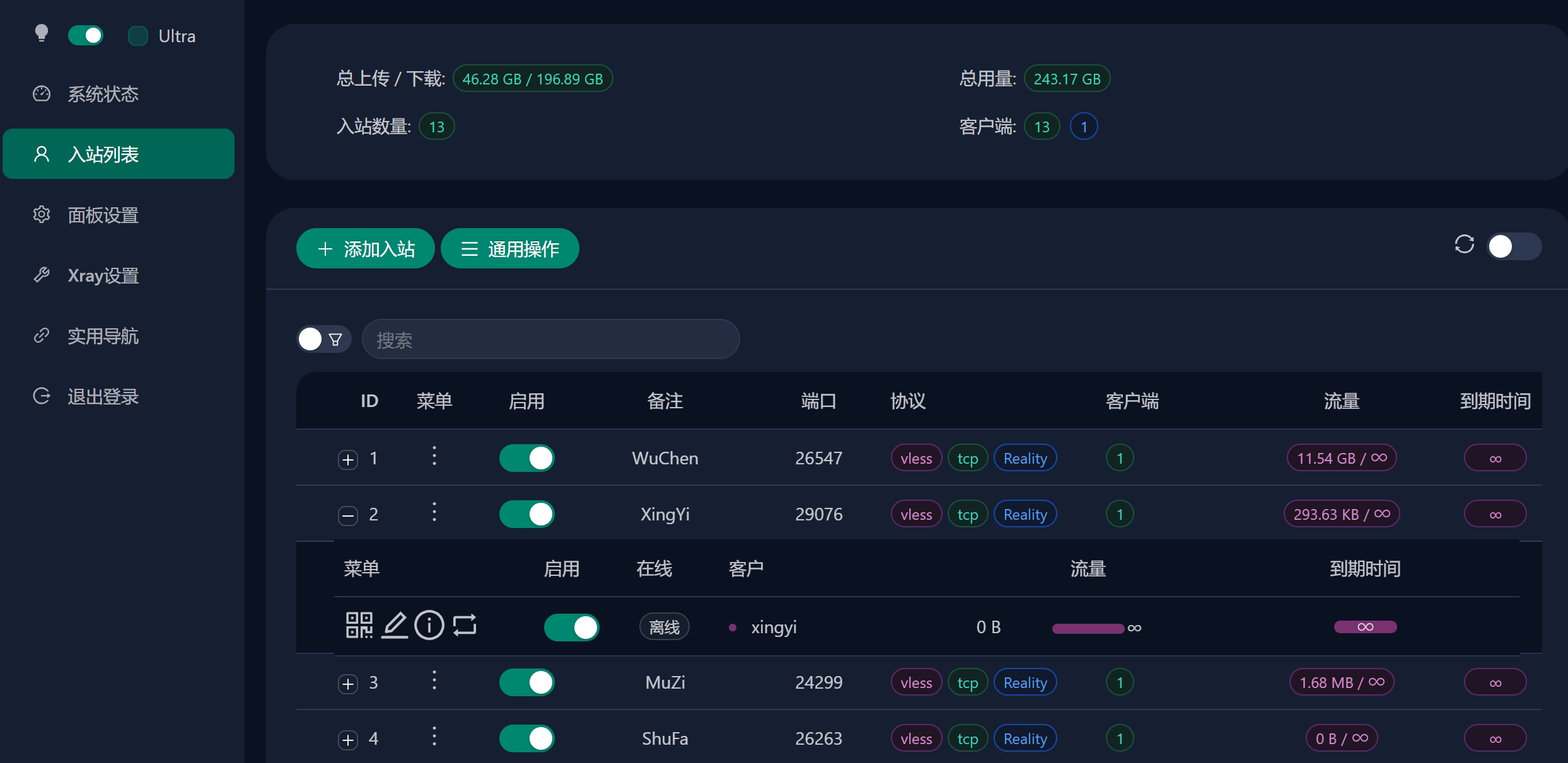 大部分功能基于原版3X-UI进行汉化优化主要的优化内容如下