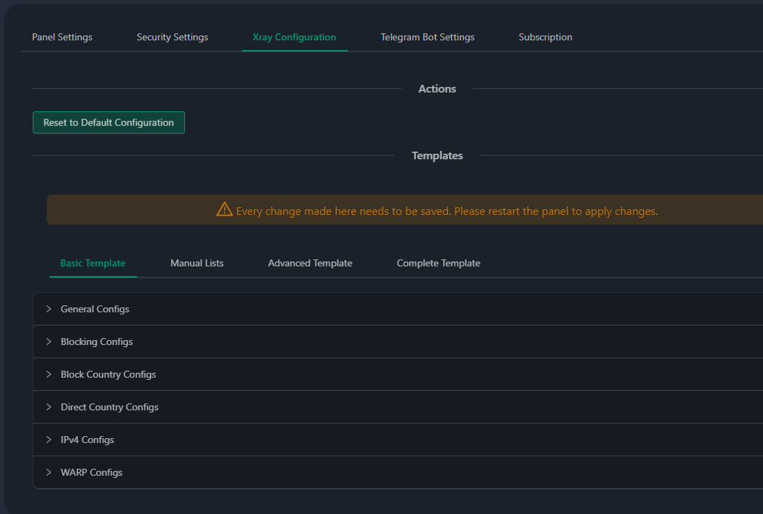 3. Turn on the config you need in panel or Copy and paste this file to Xray Configuration
