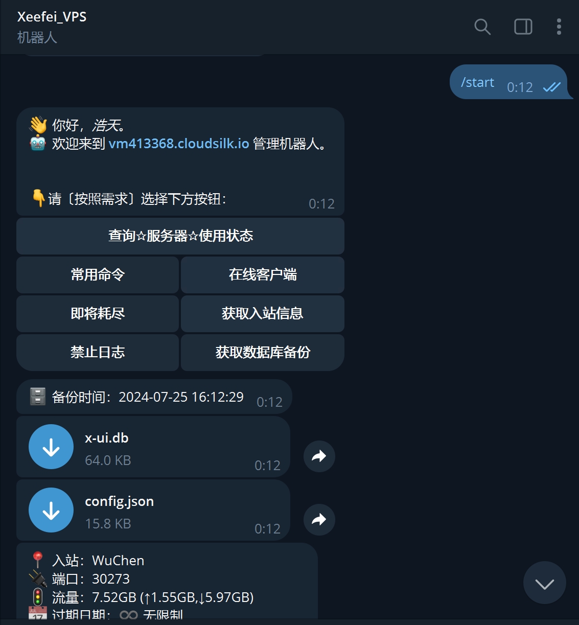 GET "/createbackup" Telegram 机器人向管理员发送备份